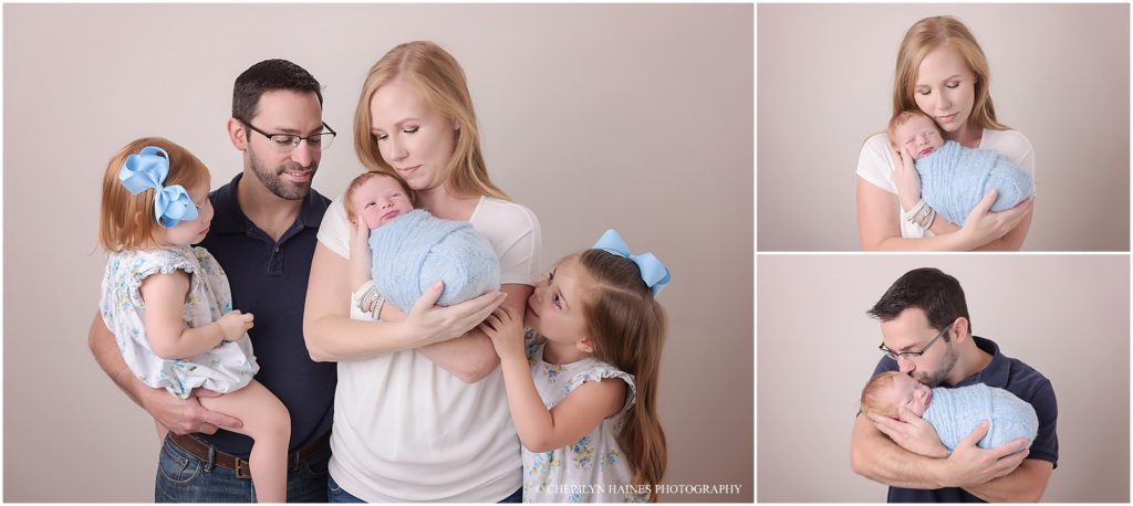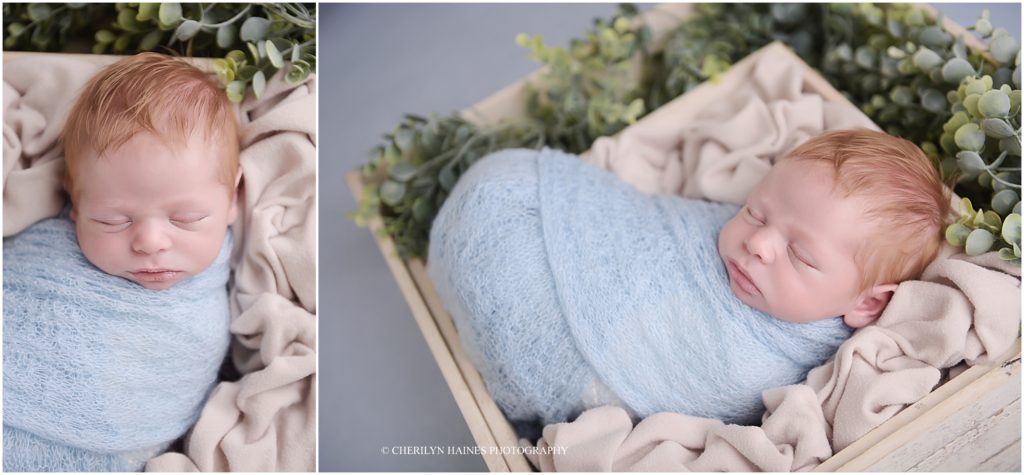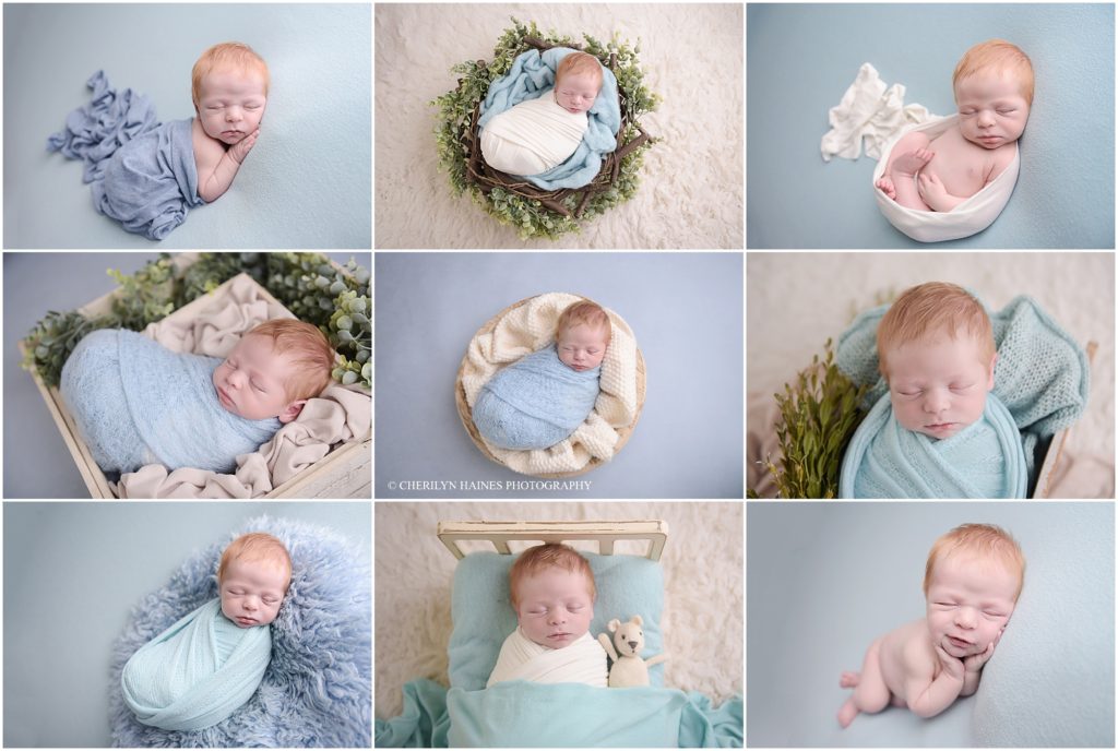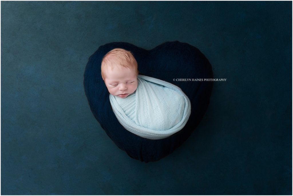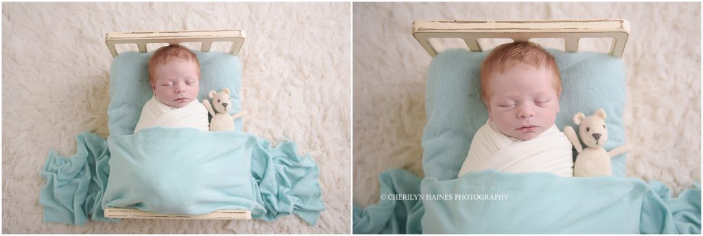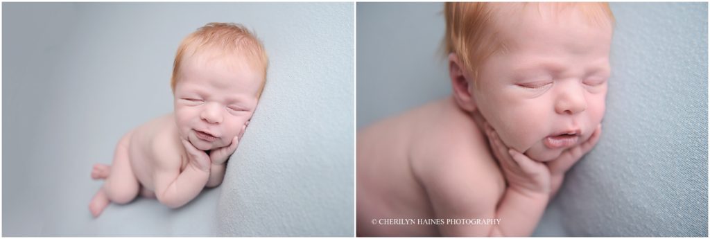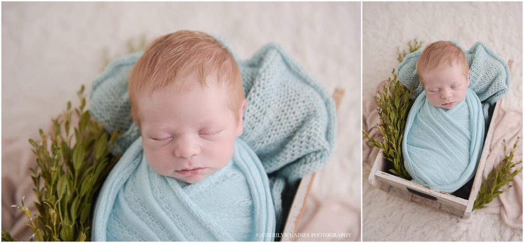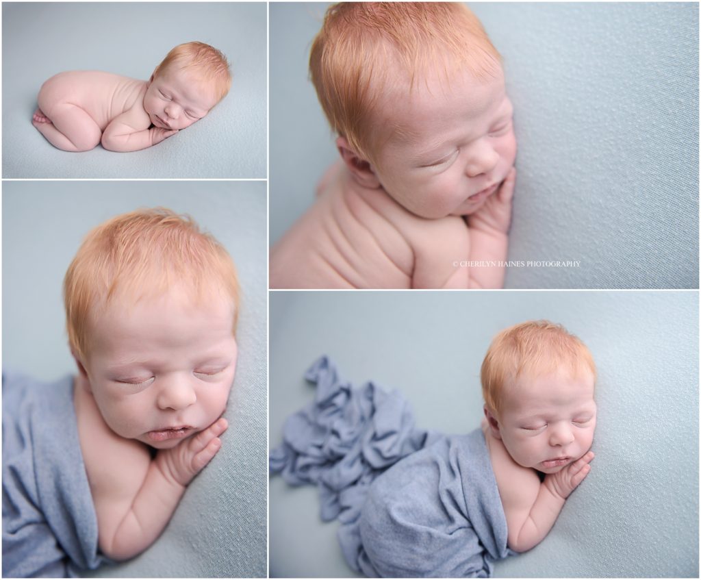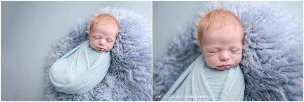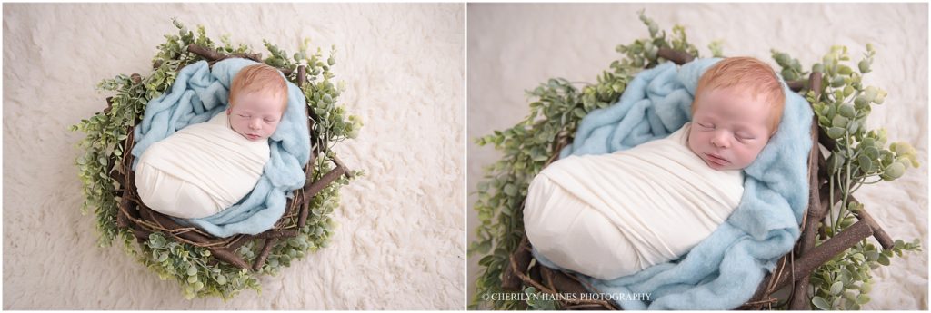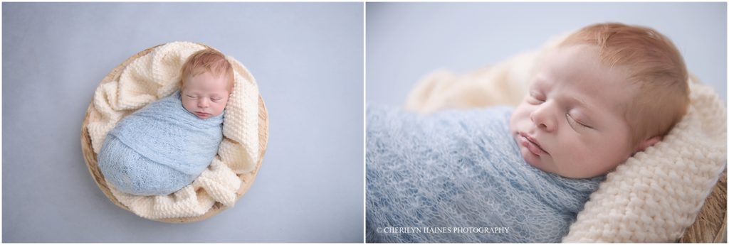 This sweet guy is the newest addition to the family of some of my sweet past clients. He has two beautiful big sisters who LOVE him and think he’s just the cutest! This adorable little red headed baby boy looked just adorable in the light baby blue color that we chose for his session and he did such a great job in every setup that we tried – even flashed a little smile for one of the shots. 🙂 Here are some of my favorites…