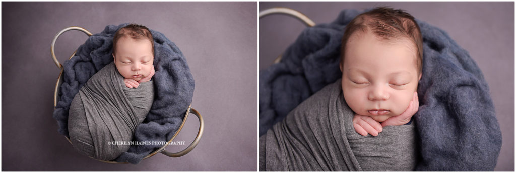 This sweet guy came to visit me when he was just a little under a month old. Even though he was a little bit older than my typical newborn you would have never known it. He was such a sweet, sleepy guy and was super content through his session. We used a variety of navy, gray, and white for his session and he looked like such a doll in every setup. He definitely preferred being swaddled but just look at those cute wide awake shots when I got him naked. 🙂 Here are some of my favorites from his session…