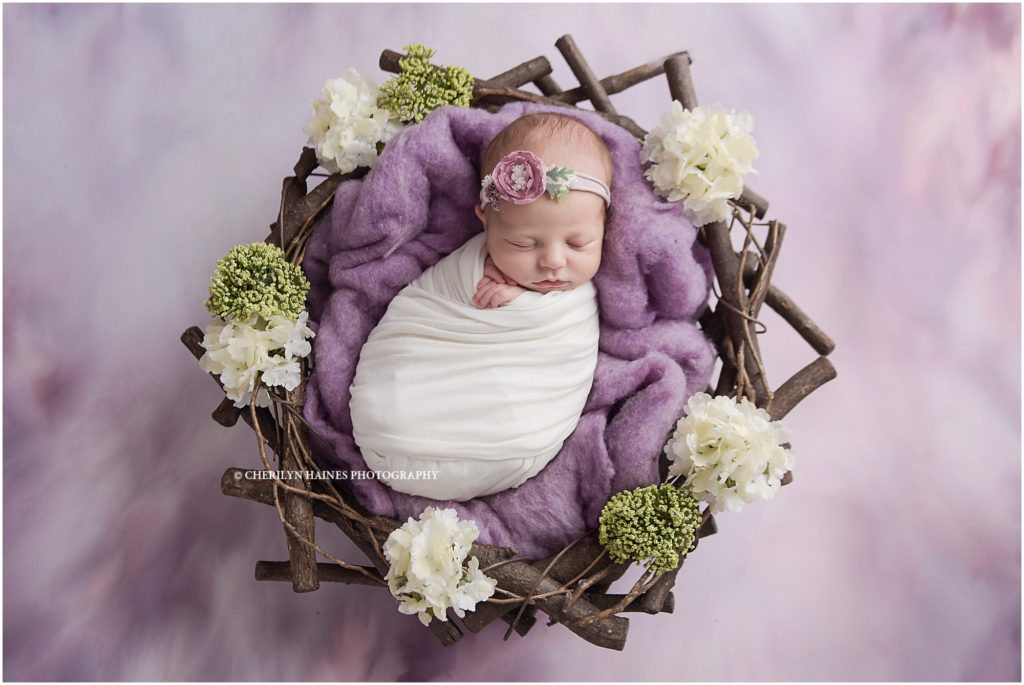 pink and purple newborn portrait session in baton rouge, louisiana photographed by cherilyn haines photography