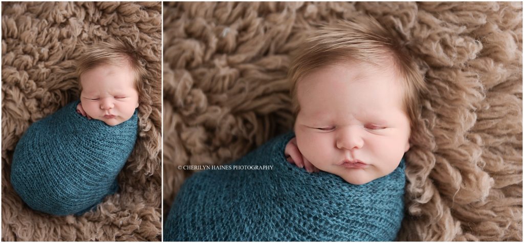 teal, navy, and brown newborn portrait session photographed by cherilyn haines photography in louisiana