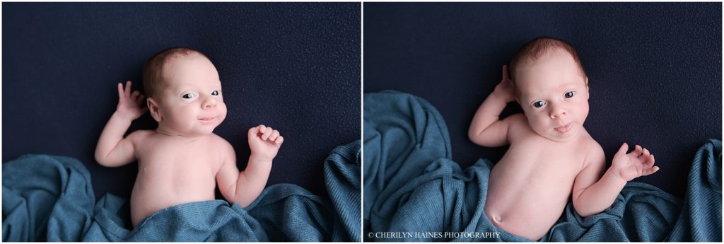 navy, teal, and brown themed newborn portrait session photographed by cherilyn haines photography in baton rouge, louisiana