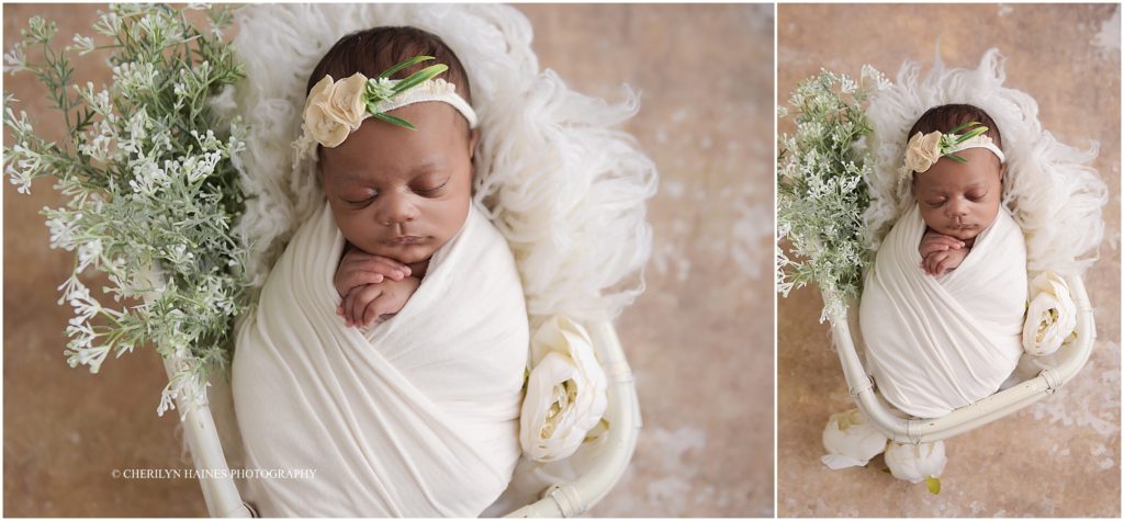 pink and white floral themed newborn session in baton rouge, louisiana with cherilyn haines photography