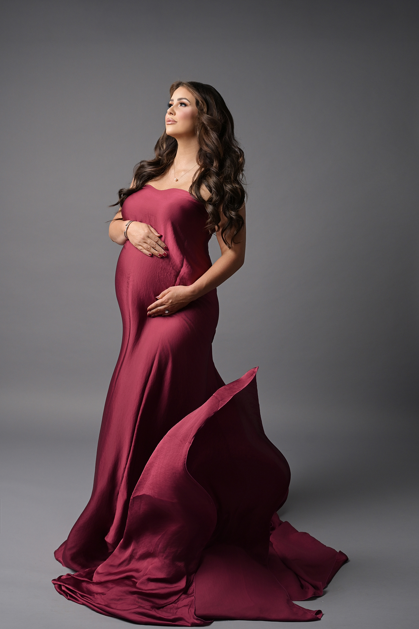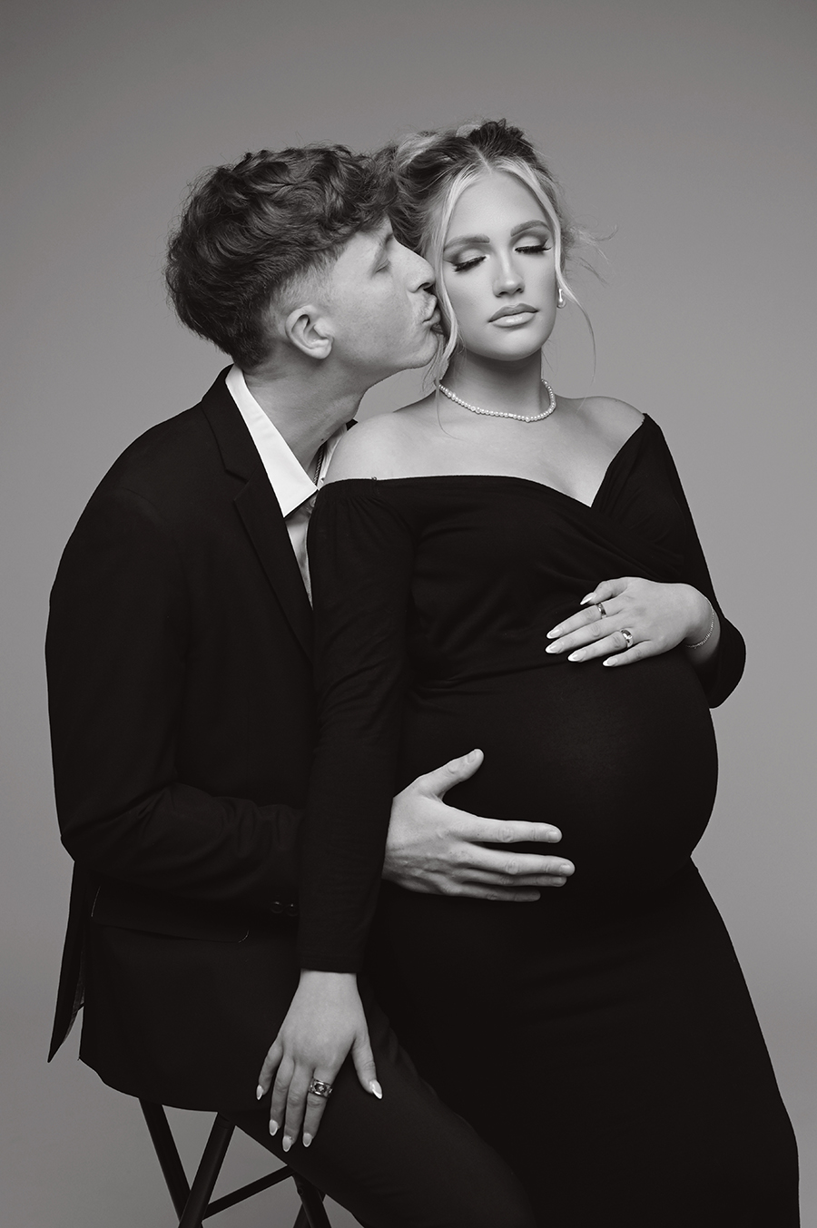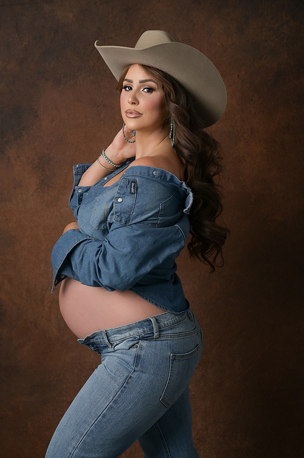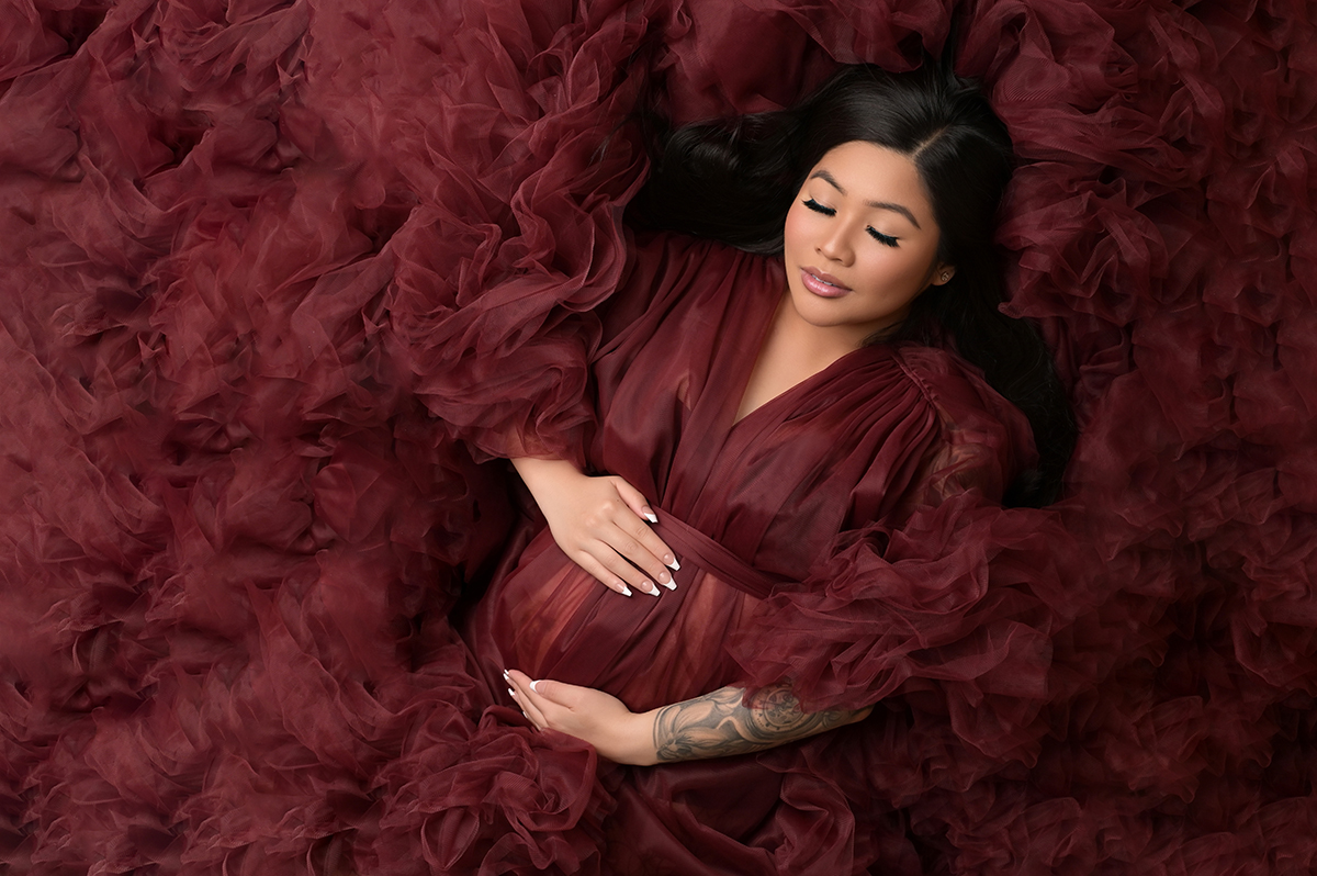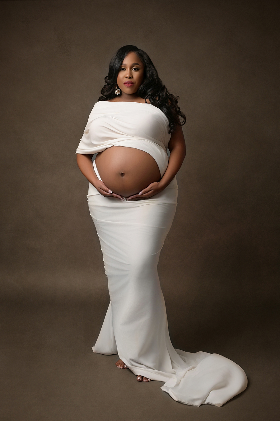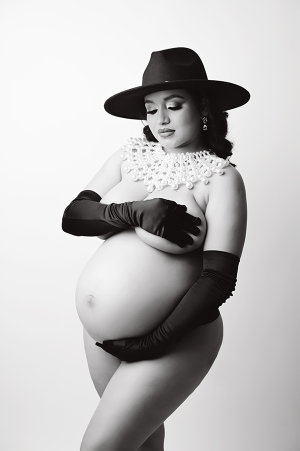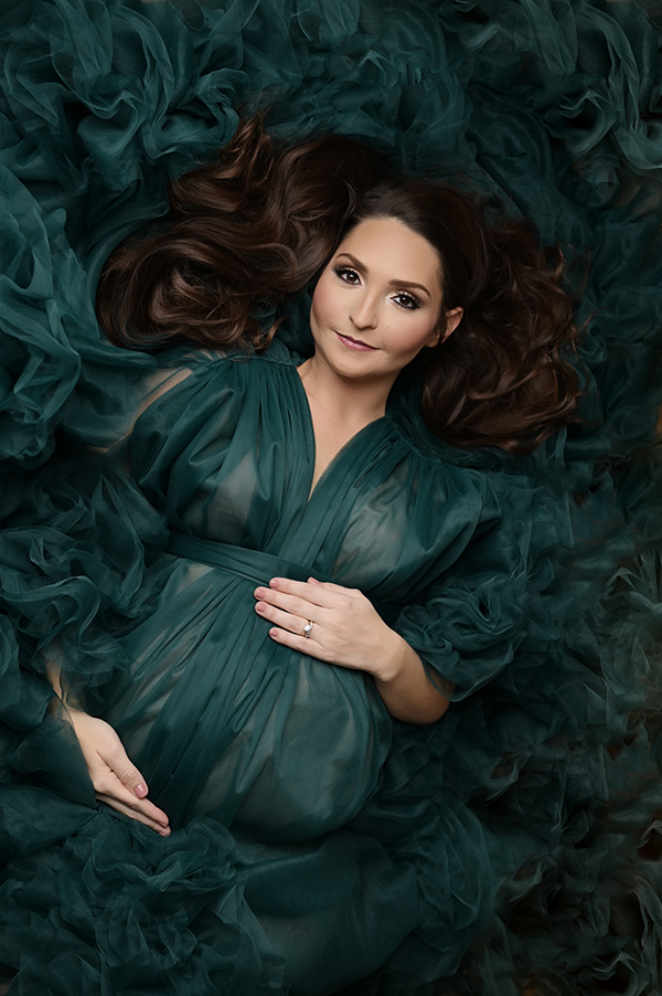All maternity portraits are created in-studio using carefully selected gowns, glamourous textiles, and controlled lighting to ensure consistency across the gallery. This approach allows each image to stand out as a beautifully created piece on it’s own.