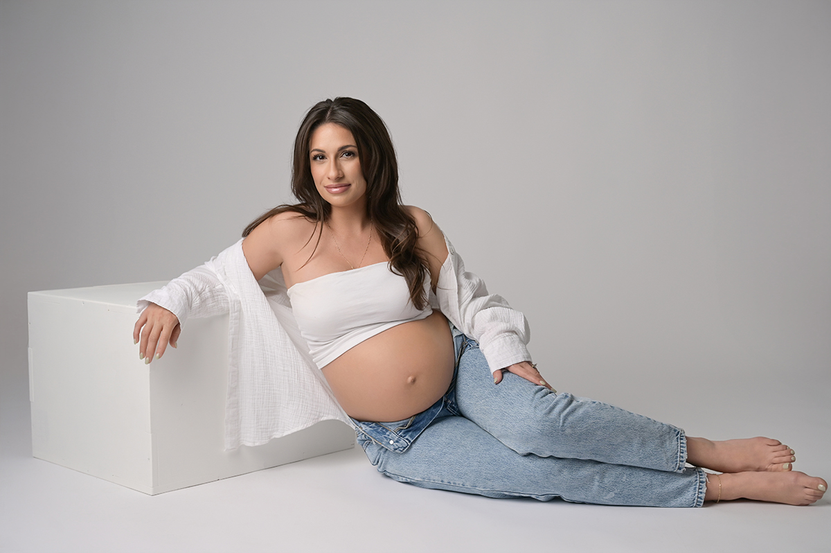 These luxury maternity portraits were photographed in our Baton Rouge studio and are designed to feel timeless, refined, and elegant. Each image focuses on creative lighting, intentional posing, and elevated styling to highlight the beauty of motherhood in a classic, studio setting. Our maternity photography style is minimal and editorial, allowing the images to remain classic for years to come.